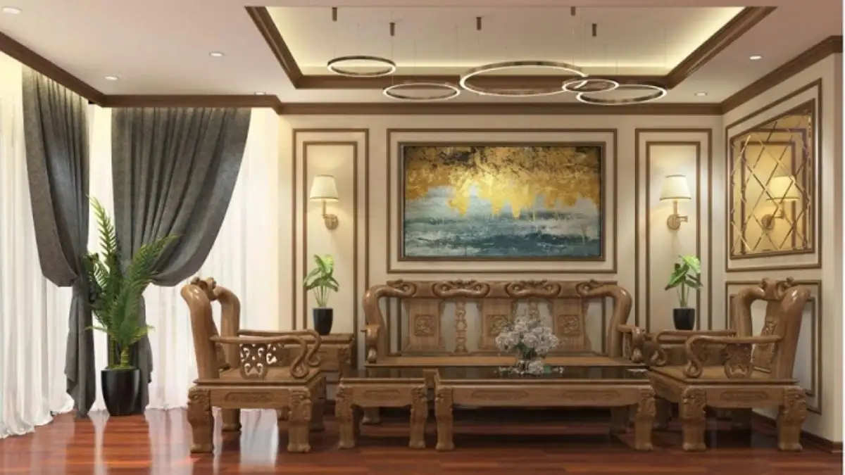 Trong nhiều công trình biệt thự và nhà ở cao cấp, phào chỉ gỗ gõ đỏ được chọn để tạo điểm nhấn cho trần và tường. Chi phí cao hơn so với các loại gỗ phổ thông, nhưng phù hợp với mục tiêu sử dụng lâu dài và yêu cầu hoàn thiện cao.