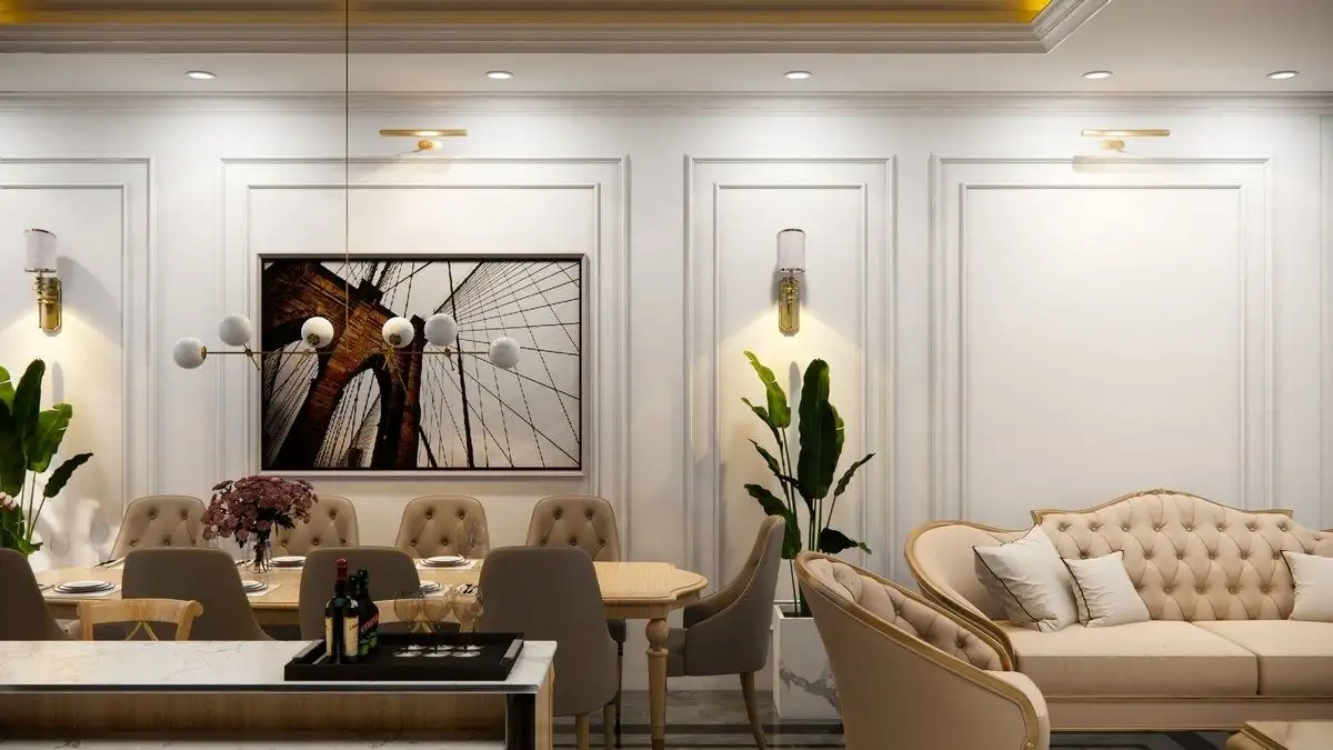 Phào chỉ tân cổ điển cần hài hòa với nội thất để không gian liền mạch. Phào chỉ nên đóng vai trò hoàn thiện, không nên lấn át tổng thể.