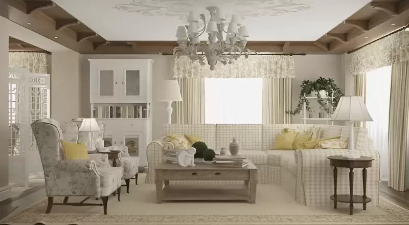 Phong cách này ưa chuộng họa tiết hoa nhí, kẻ sọc mảnh hoặc chấm bi nhỏ. Vải ren, cotton và linen thường xuất hiện trong rèm cửa, khăn trải bàn hay vỏ gối. Các vật dụng trang trí như lọ hoa thủy tinh, nến thơm vintage hay gương khung cổ điển làm tăng thêm nét mềm mại. Nhờ đó, phong cách thiết kế Shabby Chic vừa giữ sự giản dị, vừa thể hiện tinh thần nữ tính và lãng mạn.