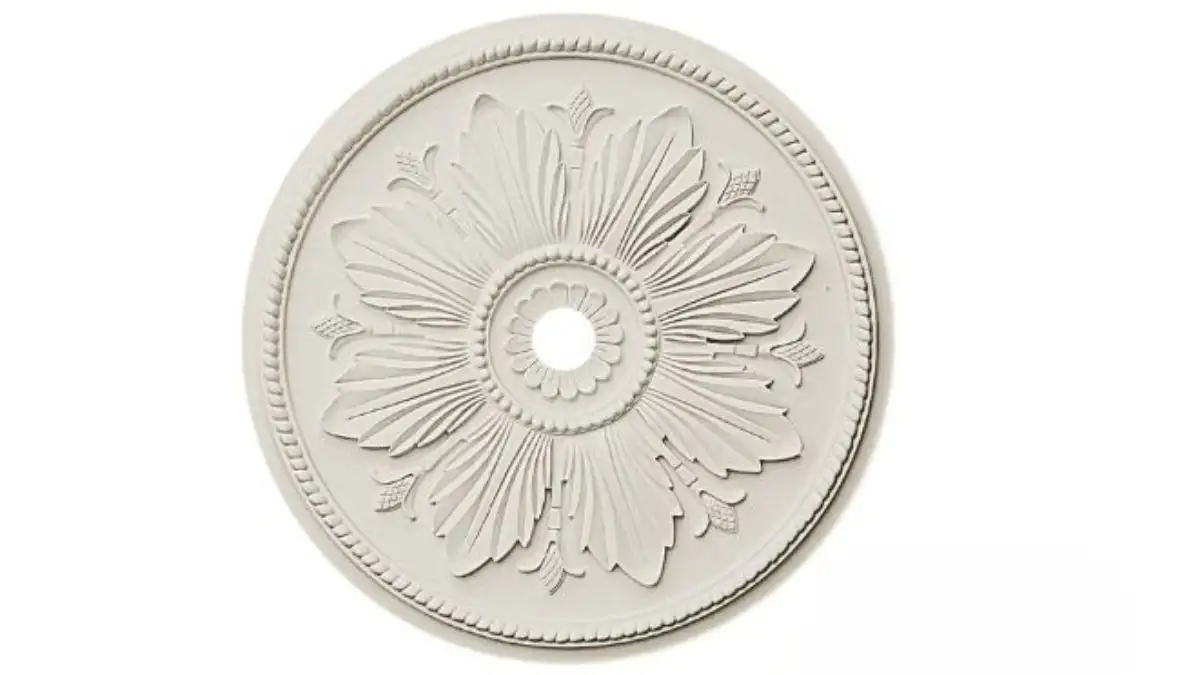 Mâm trần là chi tiết trung tâm gắn ở vị trí treo đèn chùm. Phào chỉ cổ điển sẽ chạy bao quanh mâm trần để tạo sự liên kết chặt chẽ. Lưu ý kích thước mâm trần phải tỷ lệ thuận với kích thước của đèn chùm và diện tích phòng.