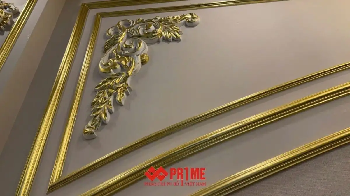 Sử dụng lá vàng công nghiệp hoặc sơn nhũ để điểm xuyết lên các chi tiết hoa văn nổi của phào chỉ.