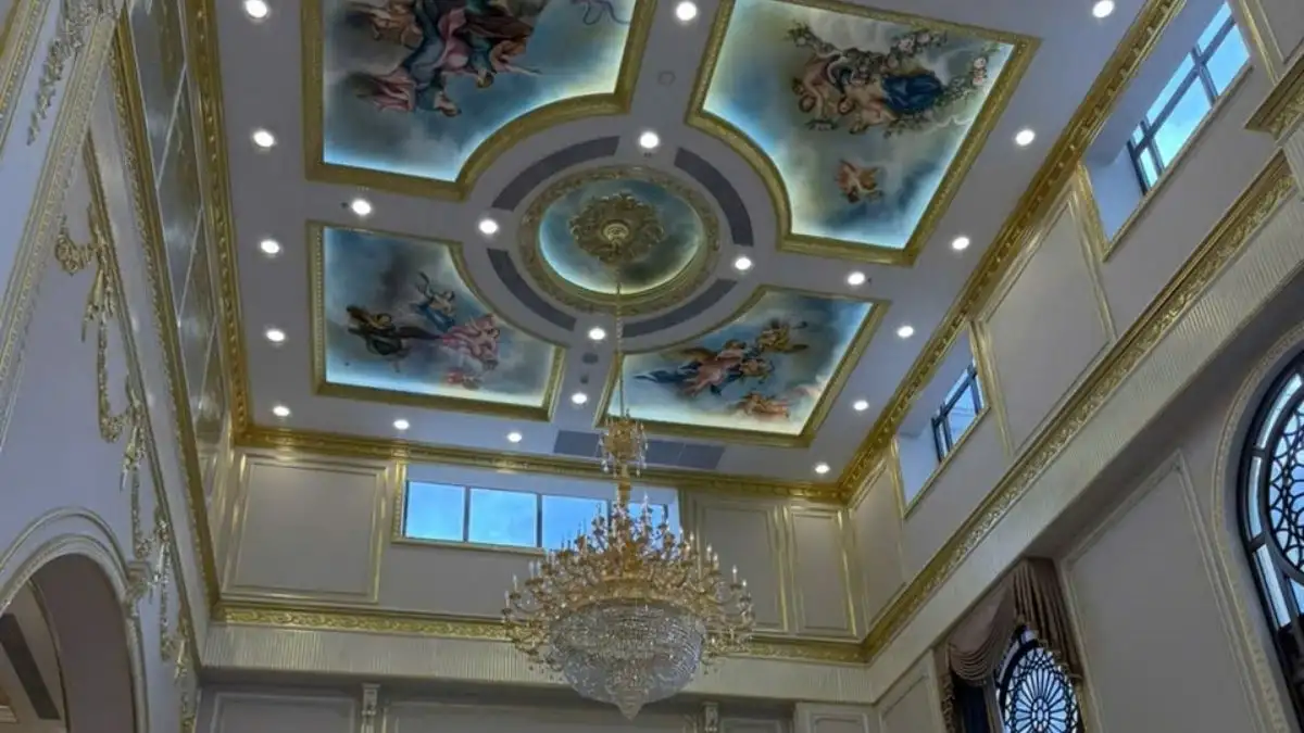 Đây là lựa chọn ưu tiên cho các không gian biệt thự cao cấp. Thiết kế sử dụng phào trần bản lớn với họa tiết lá tây hoặc hoa văn lặp lại chạy dọc chu vi trần nhà.
