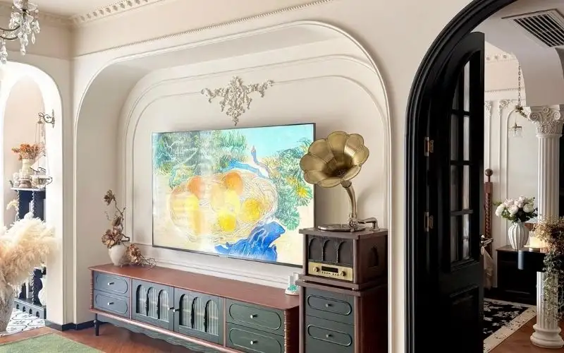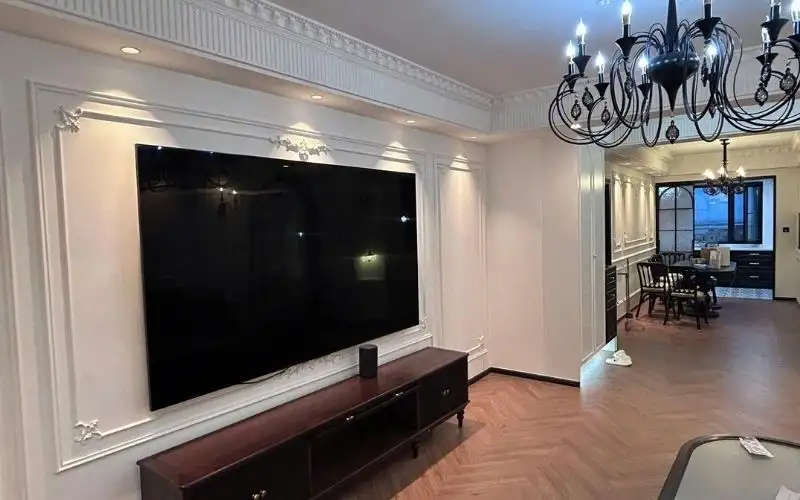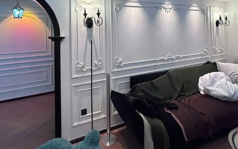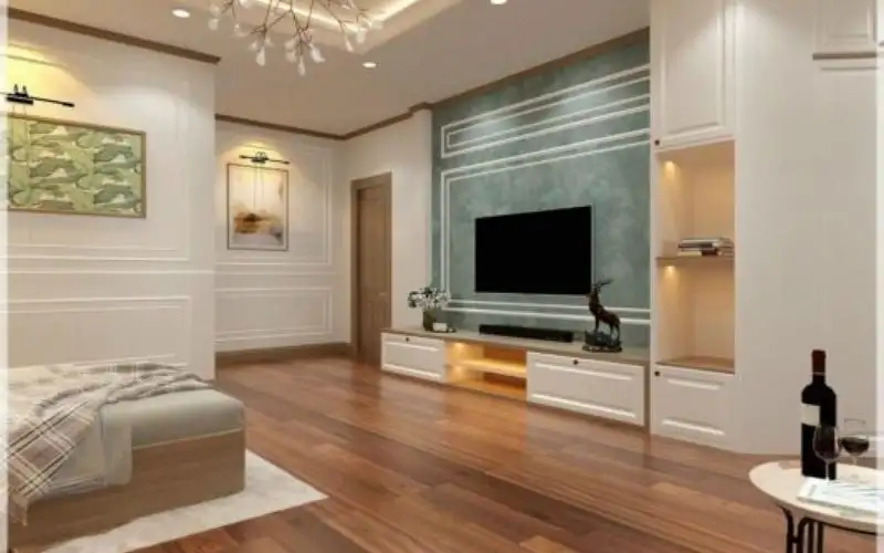 Trong các căn hộ chung cư hiện đại, phào chỉ tường thường được bố trí ở một mảng tường chính, tránh chạy dàn trải toàn bộ phòng. Cách này giúp giữ được sự gọn gàng, đúng tinh thần hiện đại và không gây rối mắt.