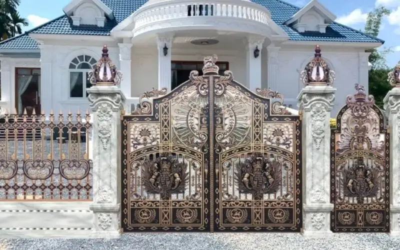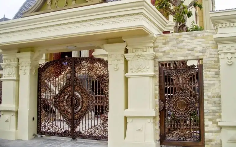 - Kích thước và tỷ lệ trụ cổng: trụ lớn, nhiều lớp phào sẽ tăng chi phí.